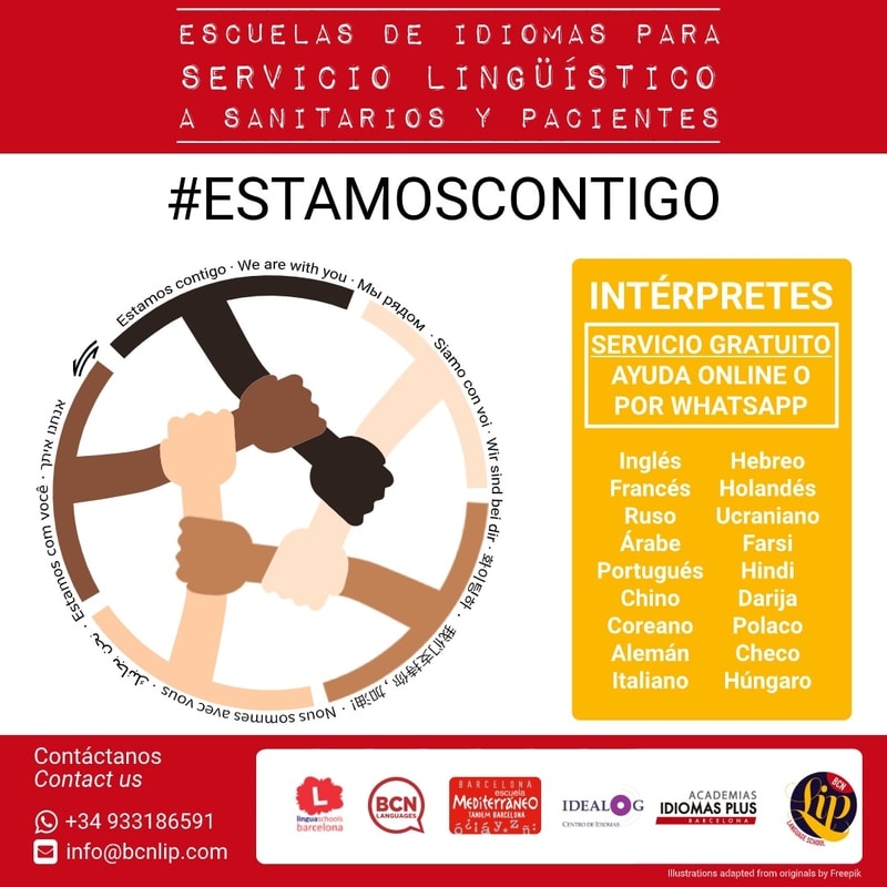 BCNLIP has started a campaign along with other schools to provide free interprets to healthcare workers and patients. Services will be made by a group of volunteers from all schools (teachers and students), who will provide their help through Whatsapp or e-mail. Thank you so much to all of you who have joined this campaign!