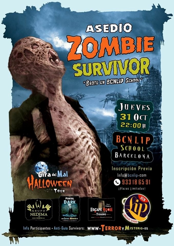 Este Halloween la vamos a liar: el 31 de octubre a las 22.00 vendrá un equipo de actores y profesionales de Toledo para preparar un juego de terror en el que tendremos que sobrevivir de un ataque zombie. La escuela se convertirá en el escenario de un juego de puro horror. ¿Quieres participar? Tienes que apuntarte en la lista de la escuela y decidir si quieres ser zombie o superviviente. La actividad es gratuita pero, si te apuntas y no te presentas, tendrás que pagar 20€. Piensa que es una noche que necesita mucha organización para preparar todo ese caos… uuuuuuuuuuuuuuuuuuuuuuuuuuuuuuuuuuuu!!!!!!!!!!!!!!!!!!!!!!!!!!