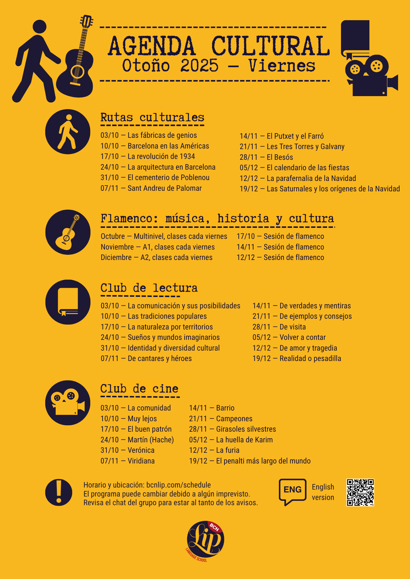 … (tablas AGENDA CULTURAL BCNLIP y AGENDA CULTURAL BCNLIP UP ya traducidas) …🤝 En colaboración con la Fundación Educativa BCNLIP